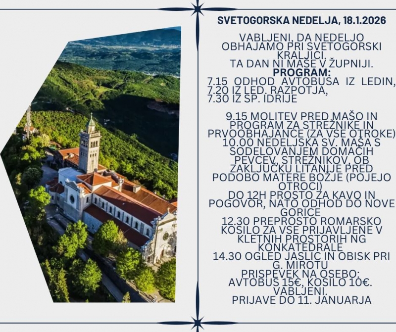 PRIJAVNICA SVETOGORSKA NEDELJA – nedelja župnije na Sveti Gori 18.1.2026 (prijava do 10.1. ali zapolnitve mest)