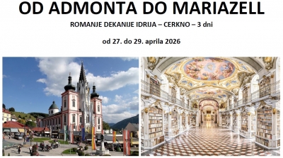 DEKANIJSKO ROMANJE po avstrijskih samostanih. Termin: 27.-29. april 2026. Cena: 315€ (minimalno 45 oseb). Prijave do: 28. februarja. Klik za PROGRAM IN PRIJAVNICO.